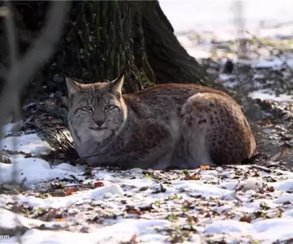 猞猁(学名:Lynx lynx):属于猫科,体型似猫而远大于猫,体粗壮,尾极短,通常头不及体长的1/4。四肢粗长而矫健。耳尖生有黑色耸立簇毛。两颊具下垂的长毛。上体浅棕、土黄棕、浅灰褐或麻褐色,或为灰白而间杂浅棕色调;腹面浅白、黄白或沙黄色。尾端呈黑色。国家二级保护动物。