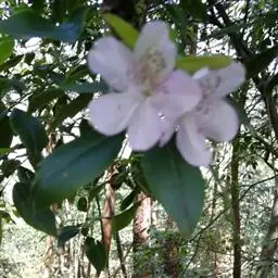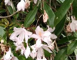 大白杜鹃(学名:Rhododendron decorum Franch. ):常绿灌木或小乔木,高1-3米,稀达6-7米;树皮灰褐色或灰白色;幼枝绿色,无毛,老枝褐色。冬芽顶生,卵圆形,无毛。叶厚革质,长圆形、长圆状卵形至长圆状倒卵形,上面暗绿色,下面白绿色。顶生总状伞房花序,有花8-10朵,有香味;花冠宽漏斗状钟形,变化大,长3-5厘米,直径5-7厘米,淡红色或白色。蒴果长圆柱形,黄绿色至褐色,肋纹明显。花期4-6月,果期9-10月。