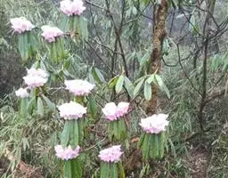 露珠杜鹃:灌木,小乔木,高约2-9米;小枝粗壮,直径约4-5毫米;幼枝有薄层绒毛和腺体,…