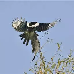 喜鹊:是鸦科、鹊属的一种鸟类。共有11个亚种。体长40-50厘米,雌雄羽色相似,…