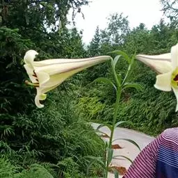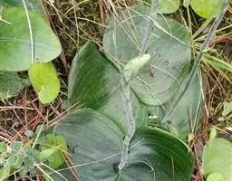 云南大百合Cardiocridum giganteum株高1~2米;地下部基生叶的叶柄基部膨大形成…