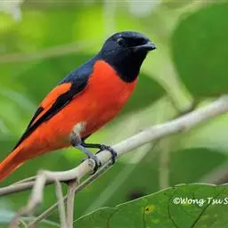 灰喉山椒鸟:共有8个亚种。体长18-22厘米。雄鸟头部和背亮黑色,腰、尾上覆羽和下体朱红色,…