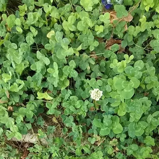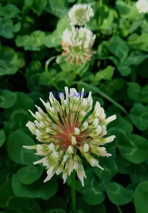 白车轴草,豆科车轴草属的多年生草本植物,茎贴地匍匐;叶柄直立,小叶心形,边缘具细齿,叶脉明显,…