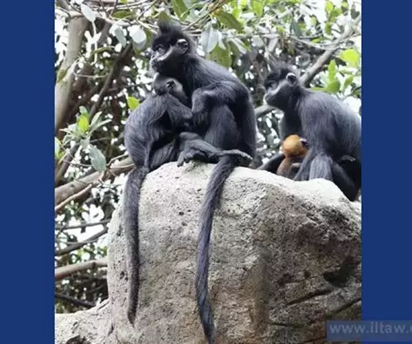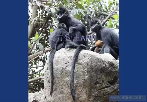 黑叶猴(学名:Trachypithecus francoisi):体长约50-60厘米,头小,尾巴较身体长,细长的四肢;头顶有直立的毛冠,体背毛比腹面的毛长而密,臀疣较大;全身黑色有光泽,耳基至两颊有白毛,手足均为黑色。以果实、种子、嫩芽和叶柄为主要食物,也吃鲜枝嫩叶、花苞、竹笋、小鸟及昆虫,食物可达80余种。