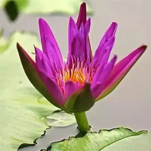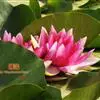 红花睡莲,多年生浮水植物。叶浮于水面,卵形,革质,表面绿色,背面紫红色,幼叶红色,花昼开夜合,浮于…