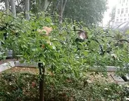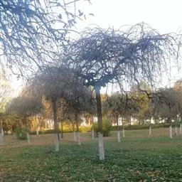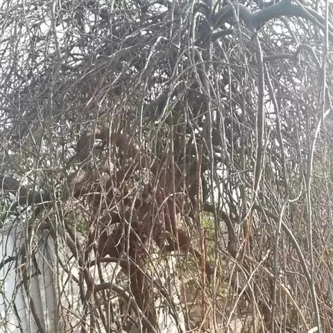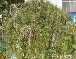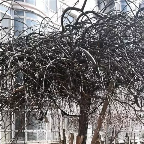树皮暗灰色,粗糙,不规则纵裂。幼树枝条直立,且被白色毛;老树枝条先端下垂,有时木栓质发达成为瘤状。…