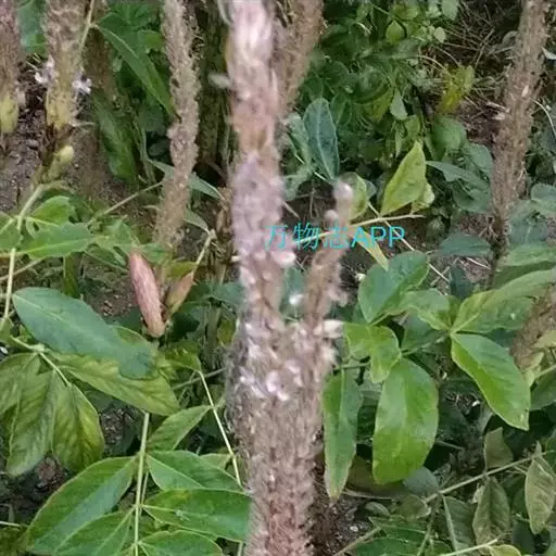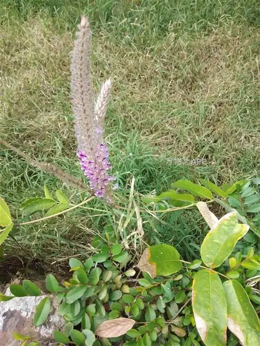 猫尾草(学名:Uraria crinita (L.) Desv. ex DC.)是豆科 ,狸尾豆属多年生亚灌木植物;茎直立,高可达1.5米.分枝少,叶片为奇数羽状复叶,托叶长三角形,先端细长而尖,边缘有灰白色缘毛;叶柄被灰白色短柔毛;小叶近革质,侧生小叶略小,上面无毛或于中脉上略被灰色短柔毛,下面沿脉上被短柔毛,在两面均凸起,下面网脉明显;小托叶狭三角形,小叶柄长密被柔毛。总状花序顶生,粗壮,苞片卵形或披针形,花梗花后伸长弯曲,花萼浅杯状,花冠紫色,荚果略被短柔毛;4-9月开花结果。