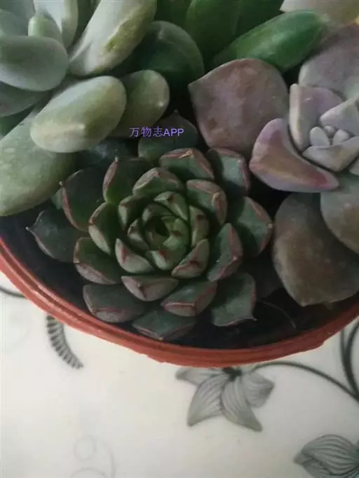 小和锦,为大和锦的杂交种,景天科多肉植物(拉丁学名:Echeveria Purpusorumcv./E. Purpusorum cv.)