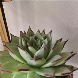 厚实的叶片上,有漂亮的红褐色花纹。相比大和锦,尺寸更加迷你可爱。生长缓慢,阳光充足的条件下,叶片会形成紧凑聚拢的状态,若是光线不足,叶片会松散开来,红色也会减退