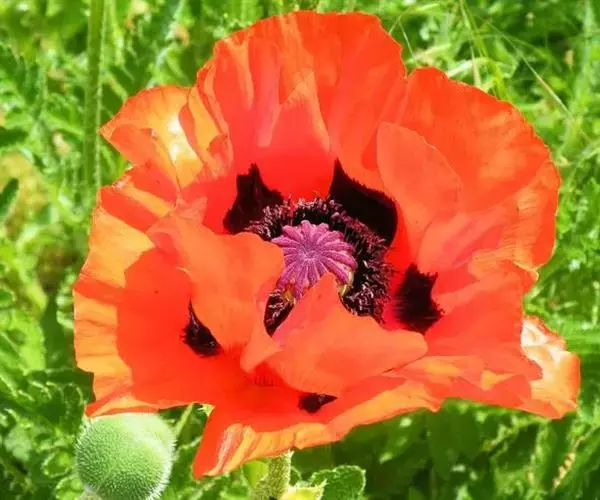 鬼罂粟(学名:Papaver orientale L.),又叫东方罂粟,是罂粟科罂粟属植物,多年生草本。茎叶具粗毛,5~6月开花,花鲜红色,4~6瓣或重瓣,花朵大,直径达到15厘米,也有粉、白、紫花品种,花瓣基部也常带斑。