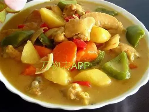 咖喱鸡 味甘,性微温。能温中补脾,益气养血,除心腹恶气。