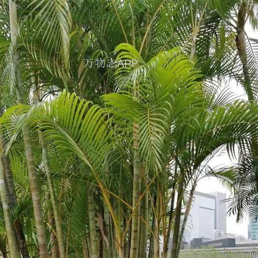 散尾葵(学名:Chrysalidocarpus lutescens H. Wendl.):又名黄椰子、紫葵。棕榈科、散尾葵属丛生常绿灌木或小乔木。茎干光滑,黄绿色,无毛刺,嫩时披蜡粉,上有明显叶痕,纹状呈环。叶面滑细长,羽状全裂,长40~150cm,叶柄稍弯曲,先端柔软。