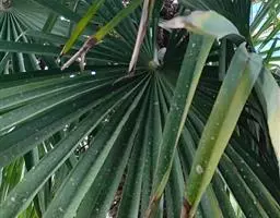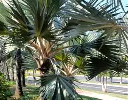 蒲葵 R. Br. ex Mart.),棕榈科蒲葵属木本植物。叶为扇形,两面均为绿色,…