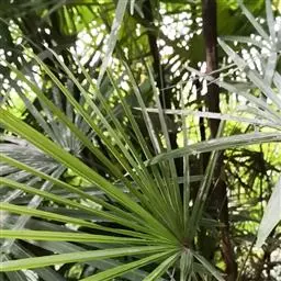 琼棕:又名陈棕,濒危种。常绿丛生灌木至小乔木状,高3至8米,茎直立、粗壮,直径4至8厘米。叶掌状深裂,…