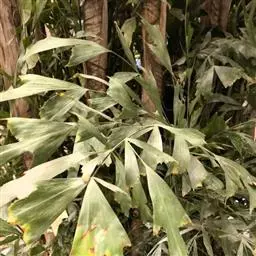 ②日照过强。散尾葵在5-9月间喜半阴的环境,阳光直射时会出现叶片发黄和焦尖、焦边等现象。在此期间应置于荫棚或大树底下,避免阳光直射。