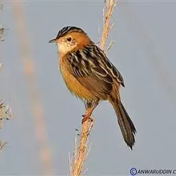 金头扇尾莺体小而具褐色纵纹的莺。嘴细长,略向下弯;翼短,体型娇小,尾长。下体皮黄,喉近白,尾深褐,…