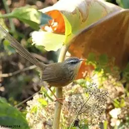 灰胸鹪莺:体长12厘米,是一种体型略小的灰褐色鹪莺。具略长的凸形尾。繁殖期成鸟:上体偏灰,…