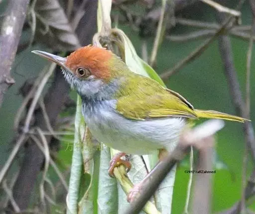 黑喉缝叶莺:体长11.5厘米,是一种小型的顶冠棕色、腹部白色的莺。尾甚长而常上翘,臀黄色,…