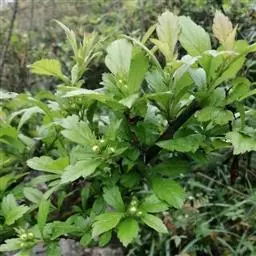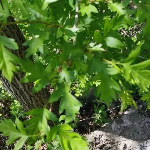 蔷薇科山碴(学名:Crataegus altaica (Loud.) Lange)是蔷薇科山楂属植物,灌木或小乔木植物,高3-6米,通常无刺。小枝紫褐色或红褐色。叶互生,宽卵形或三角状卵形;叶柄长2.5-4厘米。5-6月开花,复伞房花序;花白色,直径12-15毫米;萼筒钟状,裂片三角状卵形或三角状披针形;花瓣近圆形。梨果球形,熟时金黄色。花期5-6月,果期8-9月。