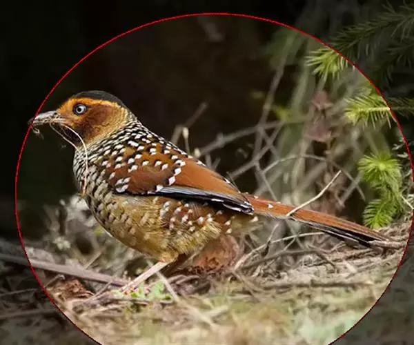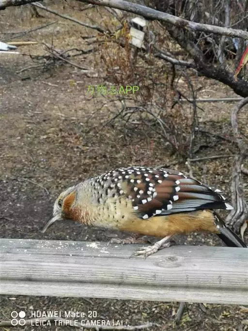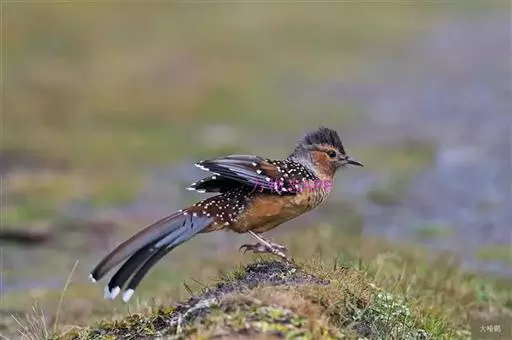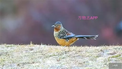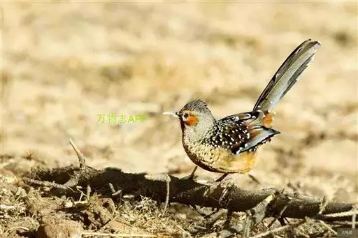 野外鉴别特征:中型鸟类,体长32-36厘米。额至头顶黑褐色,背栗褐色满杂以白色斑点,斑点前缘或四周还围有黑色。初级覆羽、大覆羽和初级飞羽具白色端斑。尾特长,均具黑色亚端斑和白色端斑。颏、喉棕褐色,喉具棕白色端斑和窄的黑色亚端斑,其余下体棕褐色。野外特征极明显,容易识别。