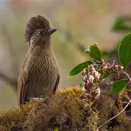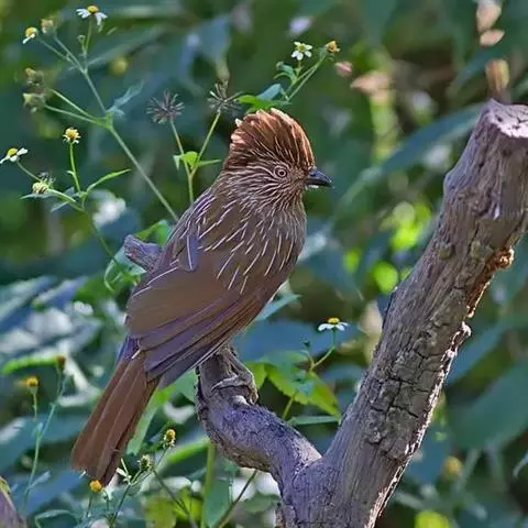 纹喉凤鹛:小型鸟类,体长13-16厘米。头顶和羽冠暗褐色或褐灰色,上体橄榄褐色,飞羽黑褐色,…