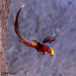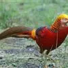 雉鸡(学名:Phasianus colchicus):共有30个亚种。体形较家鸡略小,但尾巴却长得多。雄鸟和雌鸟羽色不同,雄鸟羽色华丽,多具金属反光,头顶两侧各具有一束能耸立起而羽端呈方形的耳羽簇,下背和腰的羽毛边缘披散如发状;翅稍短圆;尾羽18枚,尾长而逐渐变尖,中央尾羽比外侧尾羽长得多,雄鸟尾羽羽缘分离如发状;雄鸟跗跖上有短而锐利的距,为格斗攻击的武器,近年来还发现距的长度与其所拥有的配偶数量明显相关,是雌鸟选择配偶的一个重要标准。