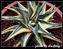条纹十二卷 Haw.)是芦荟科十二卷属植物,为多年生肉质草本植物。植株高度10-15厘米,其呈莲座…