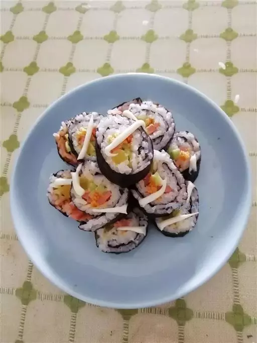 常见的做法是用紫菜将煮熟的米饭与蔬菜、肉类等包卷起来。