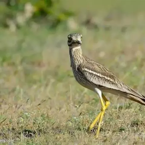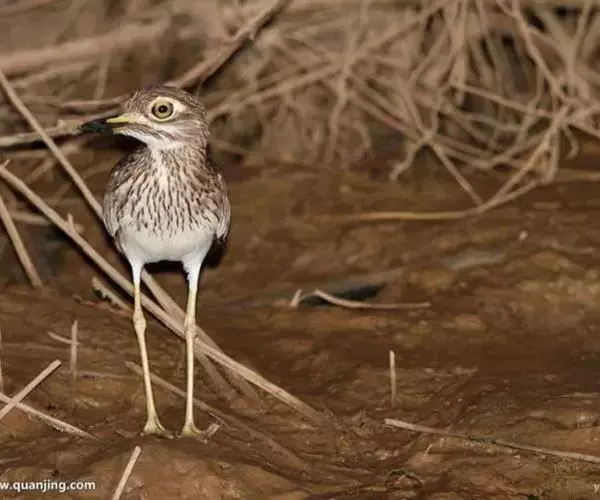 石鸻虹膜黄色,眼非常大,嘴黑色,基部黄色,脚黄色或绿灰色。