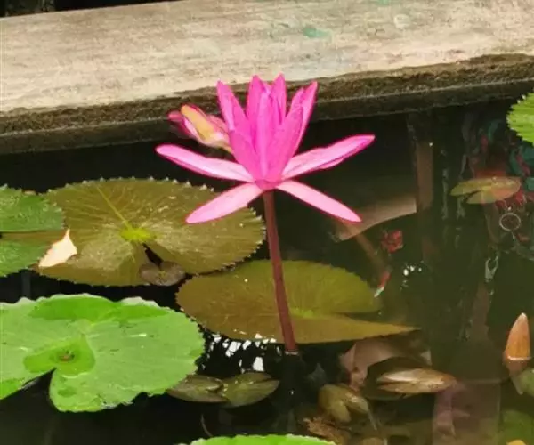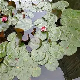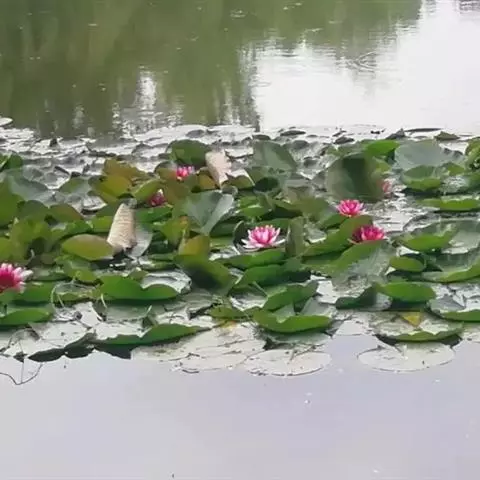 红花睡莲,多年生浮水植物。叶浮于水面,卵形,革质,表面绿色,背面紫红色,幼叶红色,花昼开夜合,浮于…