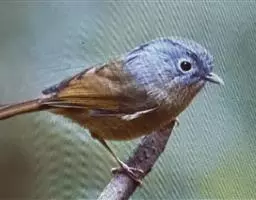 栗耳凤鹛,雌雄羽色相似。额、头顶至枕灰色,头顶有一短的不甚明显的羽冠,…