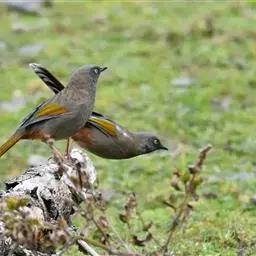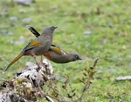 橙翅噪鹛:是噪鹛科、彩翼噪鹛属的中型鸟类,体长22-25厘米。头顶深葡萄灰色或沙褐色。上体灰橄榄褐色,…