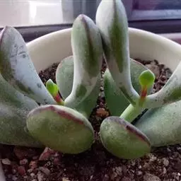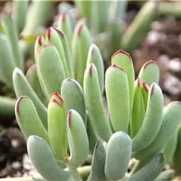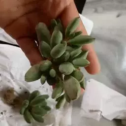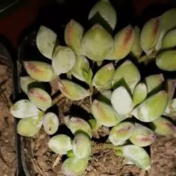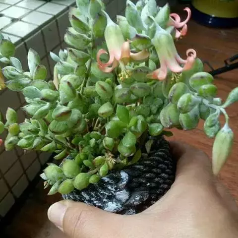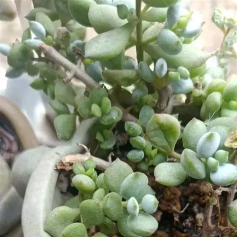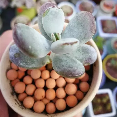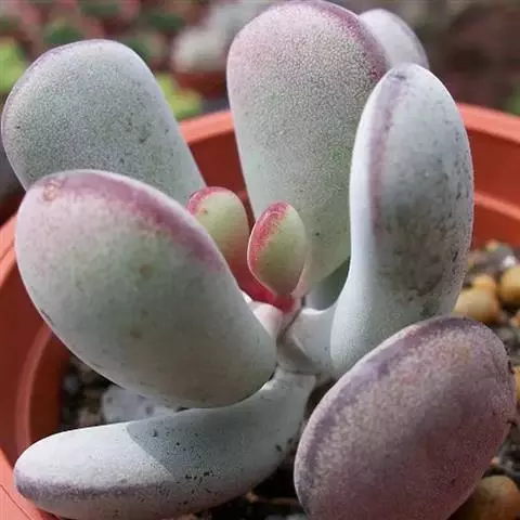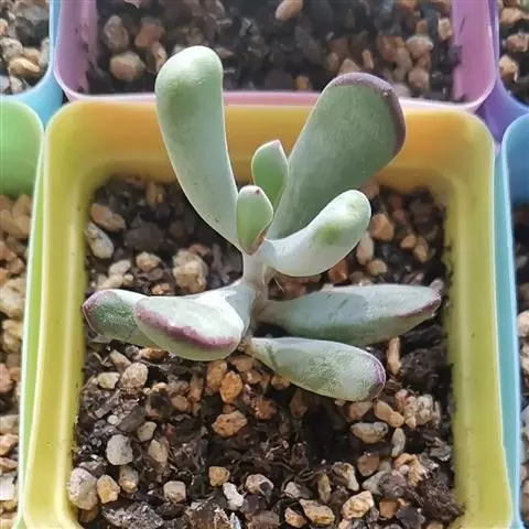 乒乓福娘,植株叶片退化成扁卵状,植株为直立的肉质灌木,能够长高。叶片对生,扁卵型至圆卵形,叶片顶端…