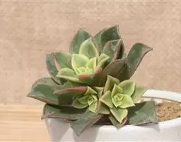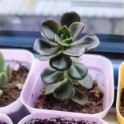 福娘为景天科银波锦属的肉质草本植物。对生的叶片呈短棒状,叶色灰绿,表覆白粉,叶缘外围镶着紫红色,…