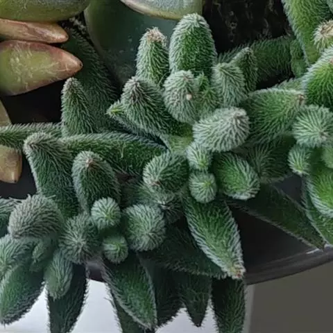 熊童子是景天科,银波锦属的多年生肉质草本植物,植株多分枝,茎绿色,肉质叶肥厚,交互对生,卵圆形,绿色,…