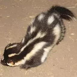 臭鼬是食肉目鼬科鼬属哺乳动物。体型与家猫相仿。全身被毛为黑色,…