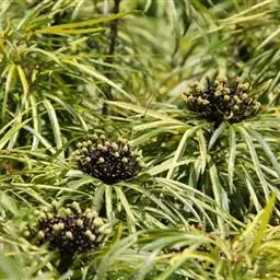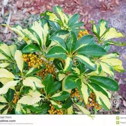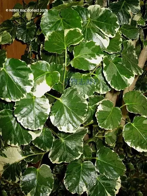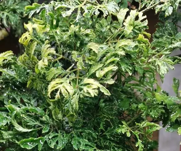 常绿性灌木或小乔木,植株多分枝,茎干灰褐色,密布皮孔。枝条柔软,叶互生,奇数羽状复叶,小叶3~4对,对生,椭圆形或长椭圆形,锯齿缘,叶绿常有白斑,散形花序,花小形 。淡白绿色.主供盆栽,庭园树及绿篱。