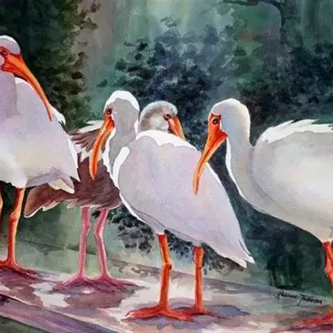 美洲红鹮(学名:Eudocimus ruber)羽色鲜红,它们总是成群的在沙滩、咸水湖、红树林和沼泽里觅食,并一起在沼泽中的大树上过夜,因此十分显眼。它们的喙细长弯曲,以泥潭中的蟹类、软体动物和沼泽地中的小鱼、蛙和昆虫等小动物为食。它们的叫声高昂而忧伤。飞行时,身影如同一团团跳跃的火焰,鲜红而热烈,除了长喙呈灰黑色外,浑身上下包括腿和脚趾都呈鲜红色 ,这就是世界上颜色最红的鸟类。是栖息在南美洲热带及特立尼达的一种朱鹭。它们是特立尼达的国鸟,与棕臀雉冠雉一同在特立尼达和多巴哥国徽上出现。 具有极高的观赏价值。