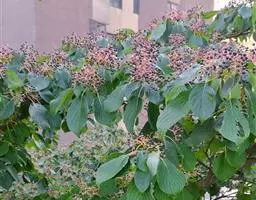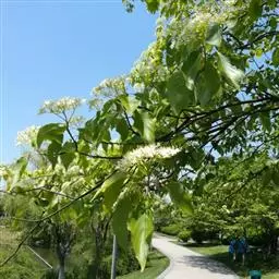 蓝果树(学名:Nyssa sinensis Oliv.)是蓝果树科,蓝果树属落叶乔木,高可达20余米,树皮粗糙,常裂成薄片脱落;小枝圆柱形,鳞片覆瓦状排列。叶片顶端短急锐尖,基部近圆形,边缘略呈浅波状,上面深绿色,下面淡绿色,叶柄淡紫绿色,花序伞形或短总状,花单性;雄花着生于叶已脱落的老枝上,花萼的裂片细小;花瓣早落,雌花生于具叶的幼枝上,基部有小苞片,子房下位,核果幼时紫绿色,成熟深褐色,种子外壳坚硬,骨质,4月下旬开花,9月结果。