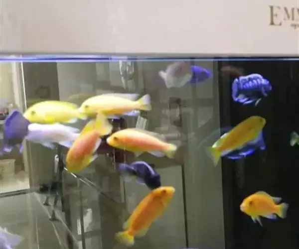 5、非洲王子鱼幼时雌雄均为橙黄色,到成鱼颜色会更加黄而且背上的黑边也会更明显。