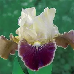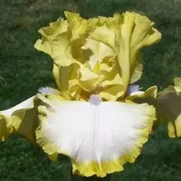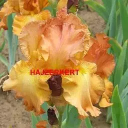 球根花卉,叶披针形、对折,基部为鞘状,全缘,中肋明显,光滑,绿色,有光泽,成熟期叶片8~11枚;双花茎,花顶生,着花1~2朵,花茎长50.0~75.0厘米、粗0.75~1.10厘米;花蝶形辐射对称,花径11.0~16.0厘米;垂瓣3枚,心形,黄色,具琴状瓣柄,中央部具匙形橙黄色条斑,瓣缘向下弯垂,长7.0~11.5厘米、宽3.0~5.0厘米;旗瓣3枚,长椭圆形,斜立,白色中略带淡紫色,长6.0~11.0厘米、宽2.0~3.0厘米;地下球茎卵圆形,外被褐色皮膜;每粒母球茎花后可形成1粒卵圆形中心球和4~7粒子球,平均繁殖系数达5.54;成熟开花商品球茎周径8~12厘米,少数可达14厘米。株高约60-80公分,地下麟茎,植株与唐昌蒲相类似,单叶丛生,叶形为长披针形,先端尖细,基部为鞘状,叶片长出6~7枚,抽出单一花茎,花形姿态优美,有三瓣花瓣,为单顶花序,花色有金、白、蓝及深紫色。