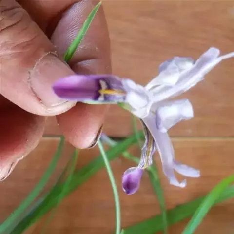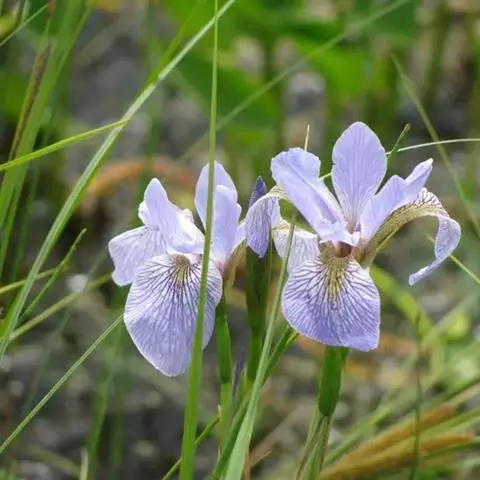 双色野鸢尾为多年生草本植物,叶子呈剑状淡绿色。…