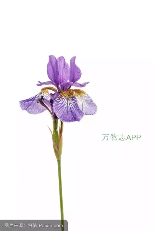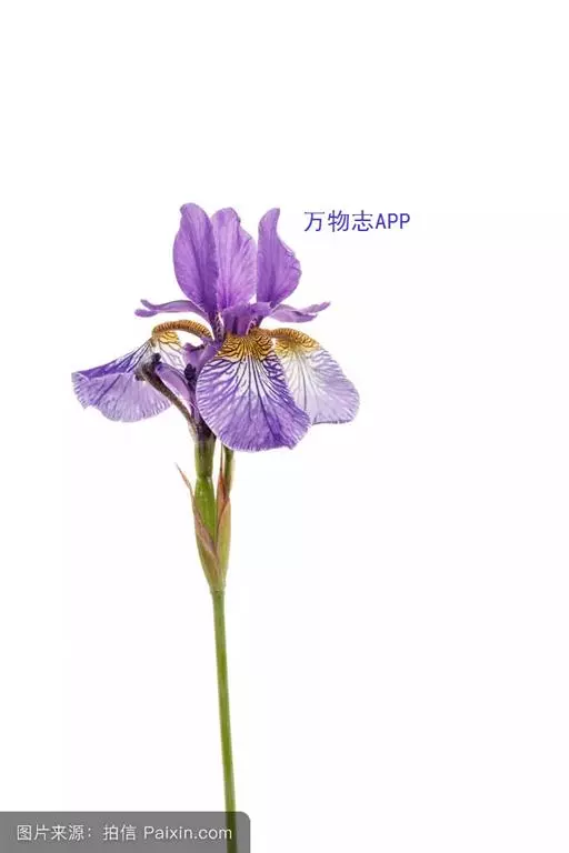 鸢尾为鸢尾科鸢尾属多年生草本植物,地下部分鳞茎长卵圆形,被褐色皮膜,叶线形,具深纵沟。茎粗壮直立,着花1~2朵,有梗。花被筒部不显或近无;垂瓣圆形,基部细缢,爪部甚长,旗瓣长椭圆形,与垂瓣等长。茎约7cm.。花色有淡青蓝色、蓝紫色、白色、黄色等。