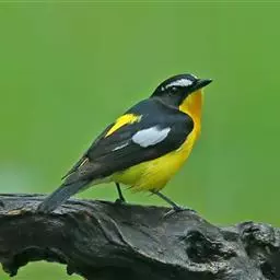 白眉姬鹟是小型鸟类,体长11-14厘米。雄鸟上体大部黑色,眉纹白色,在黑色的头上极为醒目。腰鲜黄色,…