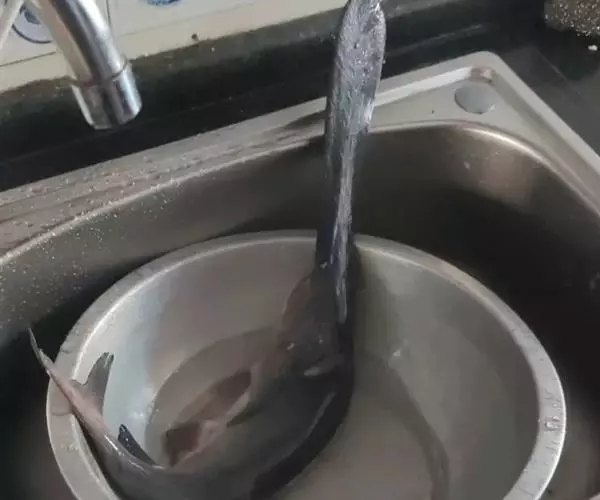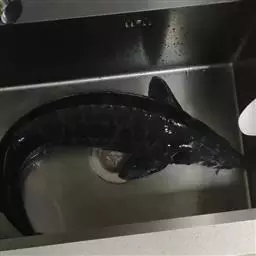 看其外观,鱼嘴扁平酷似鸭嘴,却比鸭嘴长几倍,50多厘米长的身子,又长又扁的嘴巴已经占了一大半。周身光滑,深灰色的鱼身,没有鳞片 。