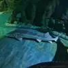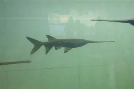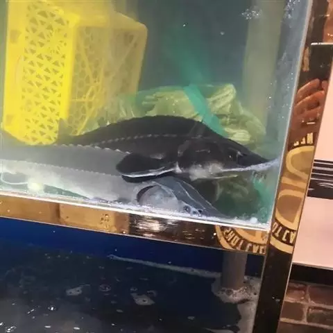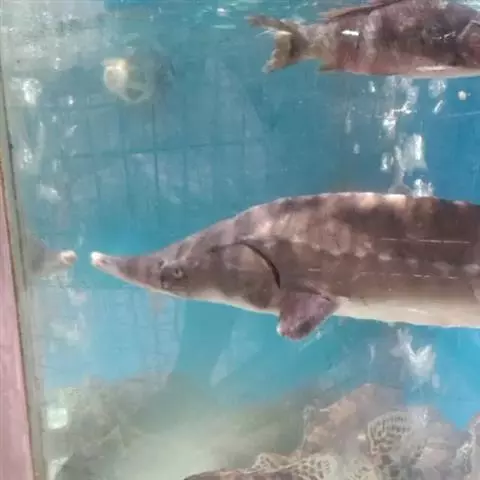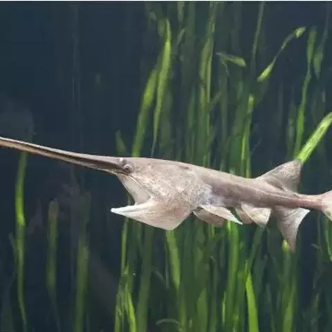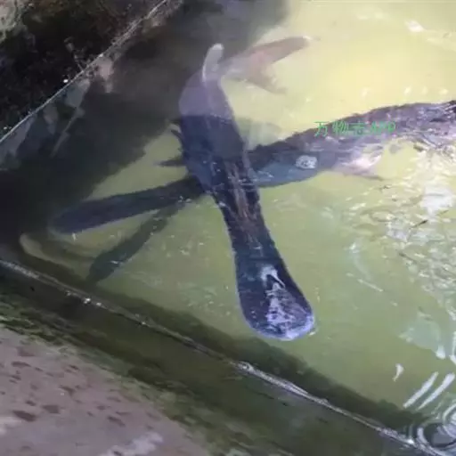 鸭嘴鱼学名:美国匙吻鲟(又名鸭嘴鲟),英文名:Polyodonspathala,匙吻鲟,学名“美国匙吻鲟”原产美国密西西比河流域,是一种大型淡水经济鱼类,属鲟形目匙吻白鲟科。是从3亿年之前(即恐龙时期)就在地球上生活,并存留下来的一种珍稀鲟鱼类,是世界上匙吻鲟科中仅有的两个品种之一。它与中华鲟以及长江水域中的白鲟同属鲟形目白鲟科。