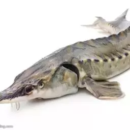 鸭嘴鱼(匙吻鲟)为软骨鱼类,体表裸露,泽润无鳞,吻呈汤匙状,形似鸭嘴,故又名鸭嘴鲟。它的吻特别长,呈扁平,如浆状;体表光滑无鳞,背部黑蓝灰色,常有一些斑点间在其中;体侧有点状赭色,腹部白色;口大眼小,前额高于口部;鳃耙密而细长,鳃盖骨大而向后延至腹鳍,尾鳍分叉,尾柄披有梗节状的甲鳞。 匙吻鲟的个体较大,寿命在30年以上。匙吻鲟的性腺成熟较晚,一般要在8龄以上才性成熟。 匙吻鲟的食性类似我国的鳙鱼,是以摄食浮游动物为饵料的,是滤食性鱼类。