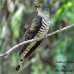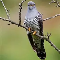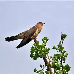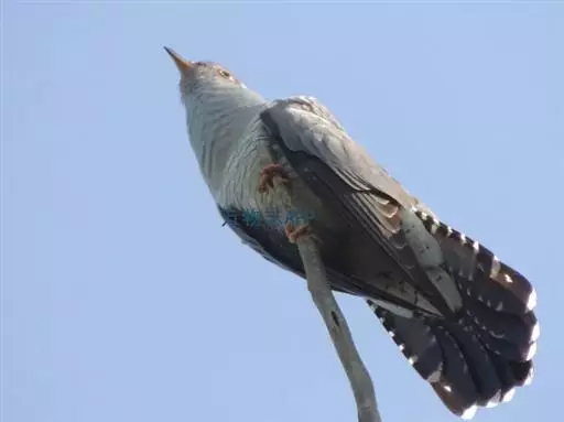 大杜鹃(学名:Cuculus canorus bakeri):是普通杜鹃的中国亚种。体长约320毫米,翅长约210毫米。雄鸟上体纯暗灰色;两翅暗褐,翅缘白而杂以褐斑;尾黑,先端缀白;中央尾羽沿着羽干的两侧有白色细点;颏、喉、上胸及头和颈等的两侧均浅灰色,下体余部白色,杂以黑褐色横斑。雌雄外形相似,但雌鸟上体灰色沾褐,胸呈棕色。又名喀咕、布谷、子规、杜宇、郭公、获谷等。