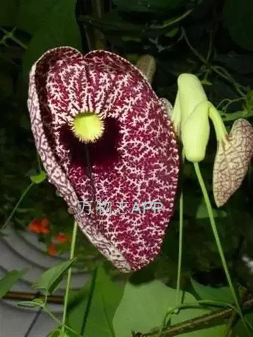 巨花马兜铃花朵的主要部分只有一片,看起来好像是一个巨大的、带有纹理的兜状物,而不像普通的花朵那样拥…