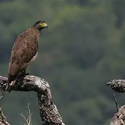 鹰雕,是隼形目鹰科鹰雕属大型猛禽,俗称熊鹰、赫氏角鹰。其上体暗褐色,头后冠羽常竖立起,…